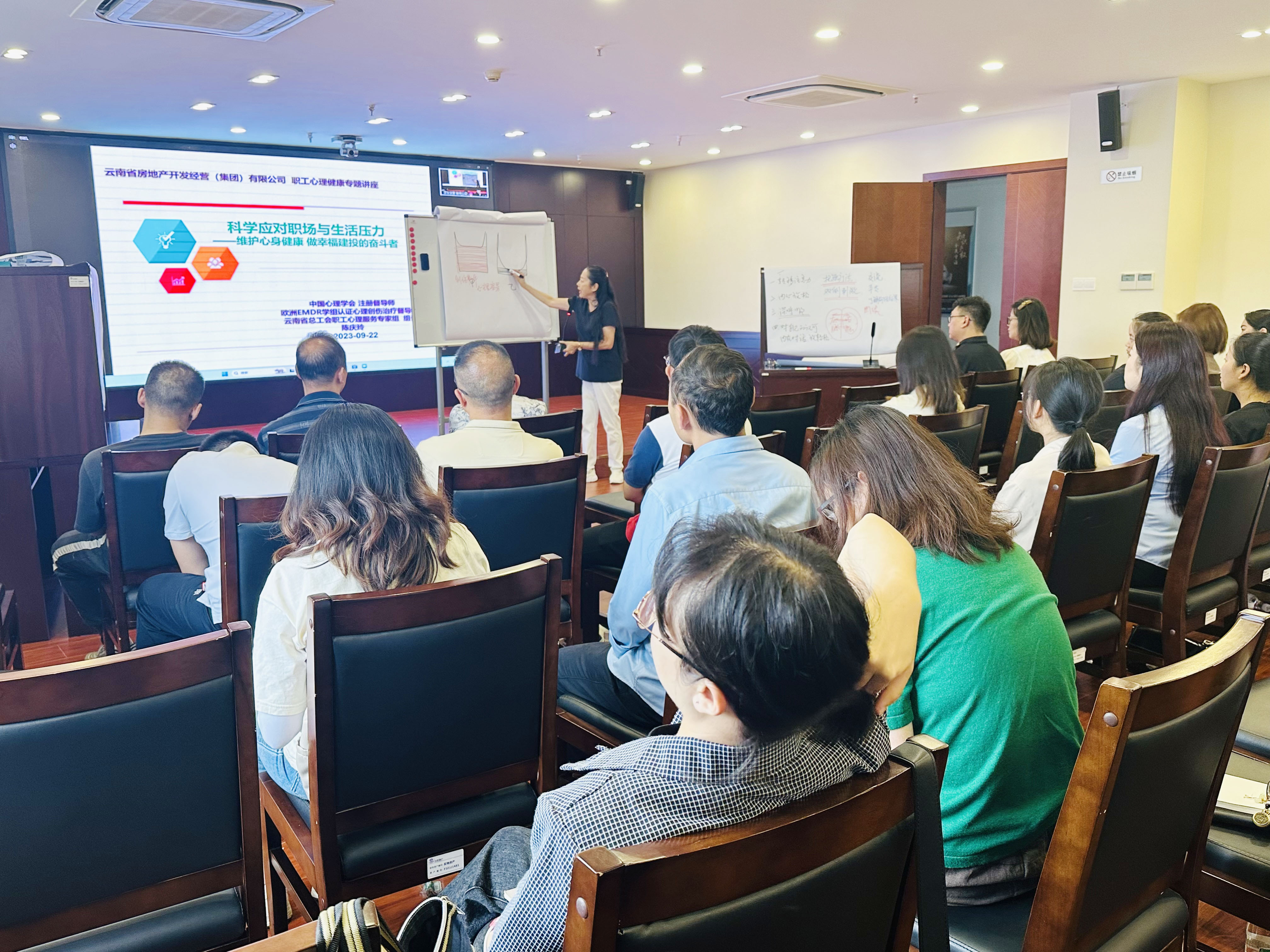 9月22日下午,公司舉辦“科學(xué)應(yīng)對壓力,維護(hù)心理健康,做新時代幸福的奮斗者”健康心理專題講座,特邀中國心理學(xué)會注冊導(dǎo)師、歐洲EMDR學(xué)組認(rèn)證心理創(chuàng)作治療督導(dǎo)師、云南省總工會職工心理服務(wù)專家組組長陳慶玲為職工授課。公司工會主席、副總經(jīng)理胡亞東及本部各部門、各基層單位職工100余人參加講座。