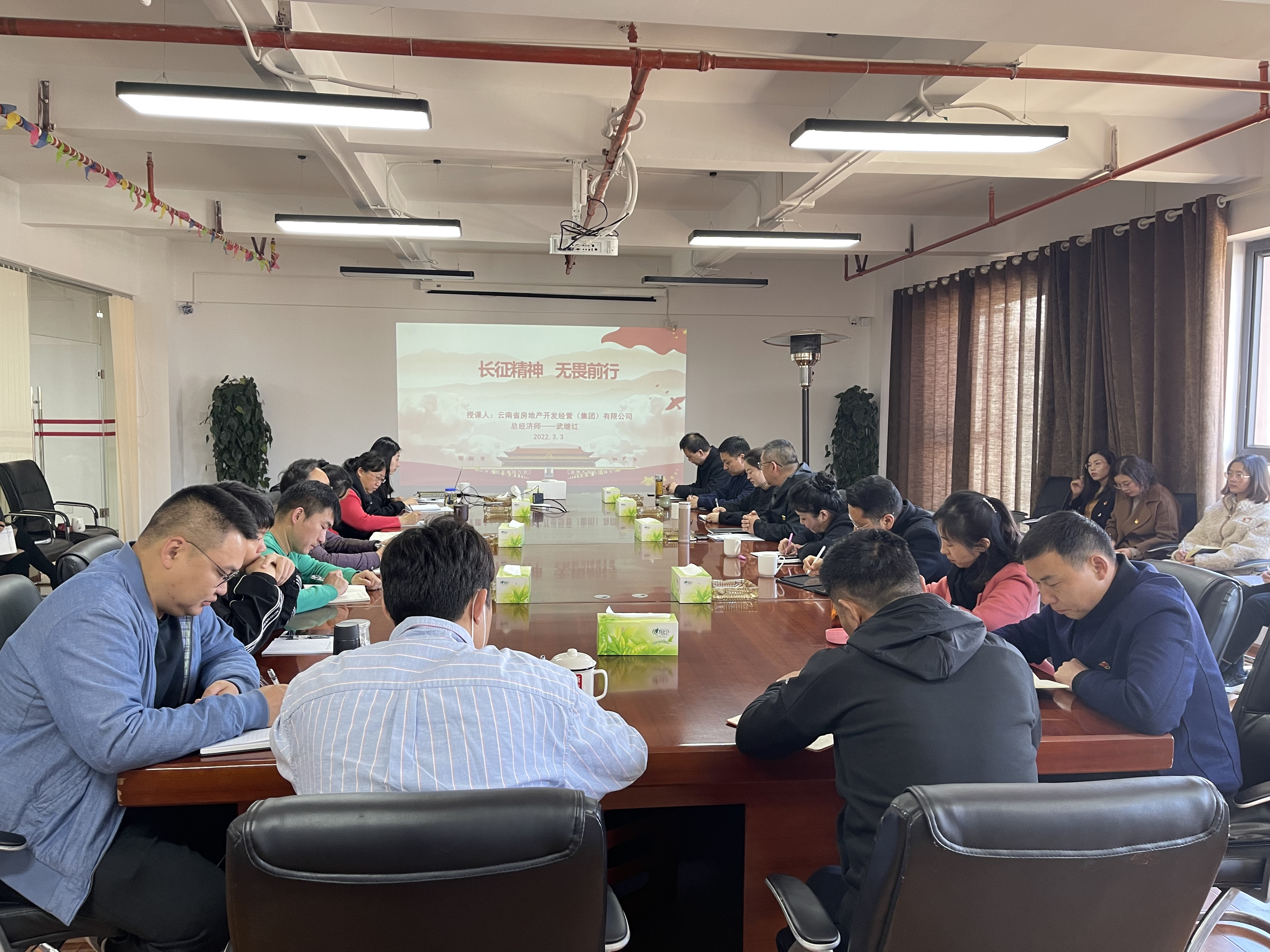 3月3日上午,公司總經(jīng)濟(jì)師武繼紅為陽宗海片區(qū)、云航地產(chǎn)公司黨員干部職工講授“長征精神 無畏前行”專題教育黨課。