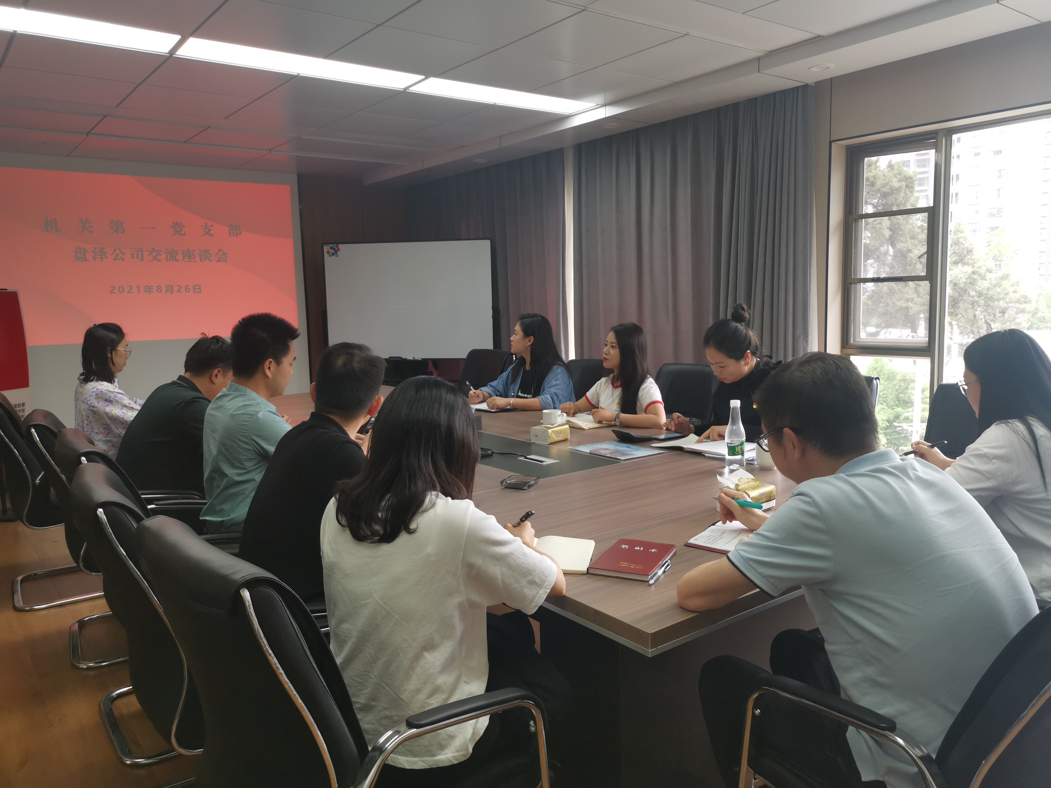 8月26日,公司機關第一黨支部支委到盤澤公司、石林分公司交流座談。石林分公司、盤澤公司全體干部職工參加座談會。