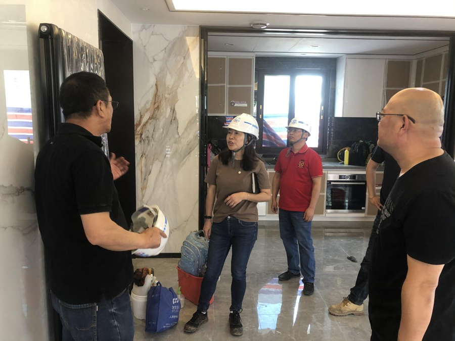 袁明紅詳細了解了項目現(xiàn)場的質(zhì)量、安全、進度、文明施工等情況,參觀了精裝修樣板房,針對項目質(zhì)量控制、安全管理等方面提出了三點要求:一是要嚴把質(zhì)量關,做到項目質(zhì)量管理精細化;二是時刻繃緊安全這根弦,杜絕安全事故的發(fā)生;三是對樣板房精裝修進行細節(jié)優(yōu)化,確保產(chǎn)品的高品質(zhì)。