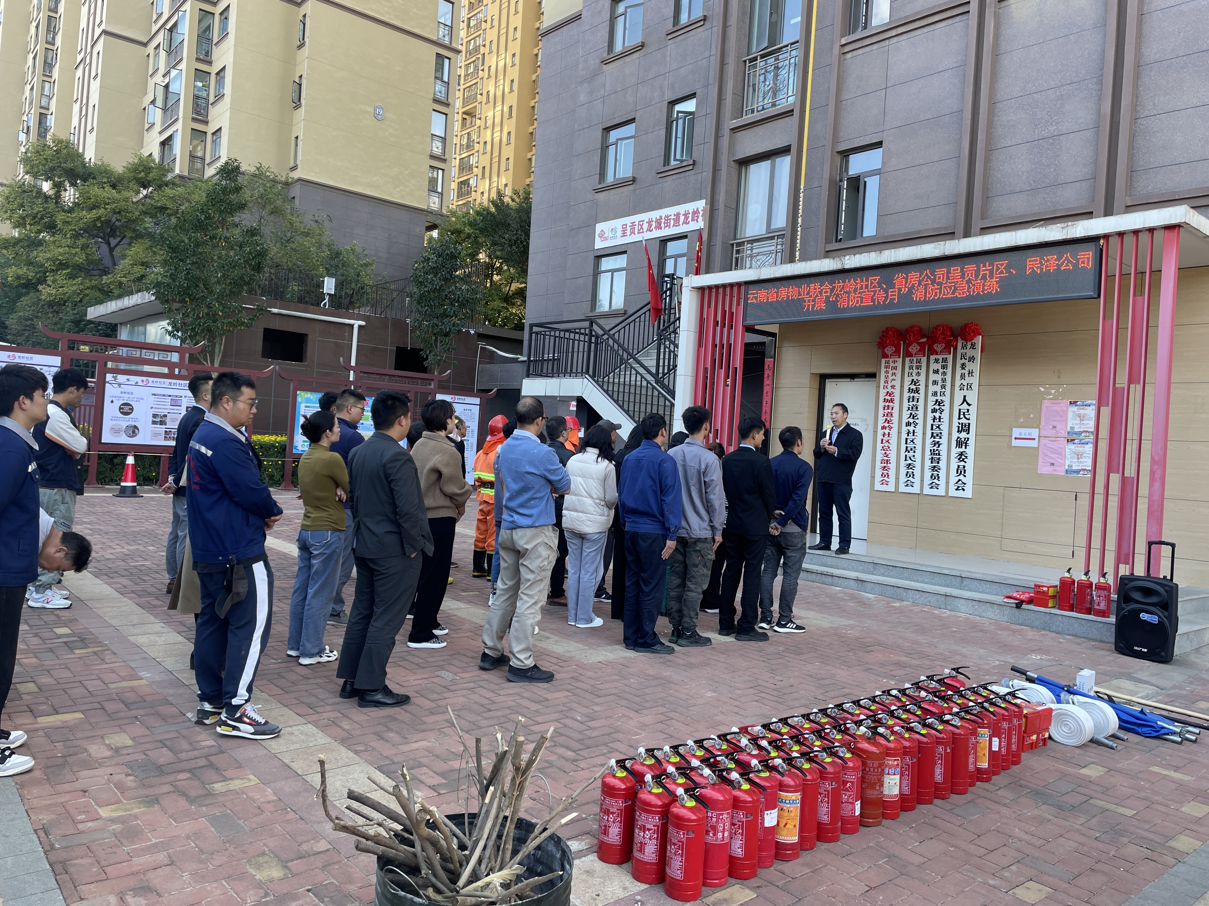 在興錦嘉園小區(qū),省房物業(yè)聯(lián)合呈貢片區(qū)、民澤公司、龍嶺社區(qū)開展消防安全演練活動(dòng)。