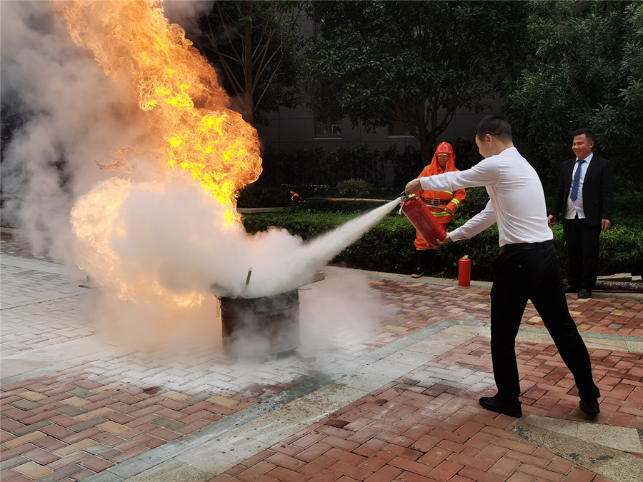 演練結(jié)束后,物業(yè)公司工作人員現(xiàn)場(chǎng)演示了滅火器使用方法,并邀請(qǐng)公司員工,社區(qū)工作人員以及在場(chǎng)的業(yè)主“零距離”體驗(yàn)滅火器操作及滅火的過(guò)程,有效地提高了他們的安全意識(shí)及應(yīng)對(duì)火災(zāi)的自救能力。
