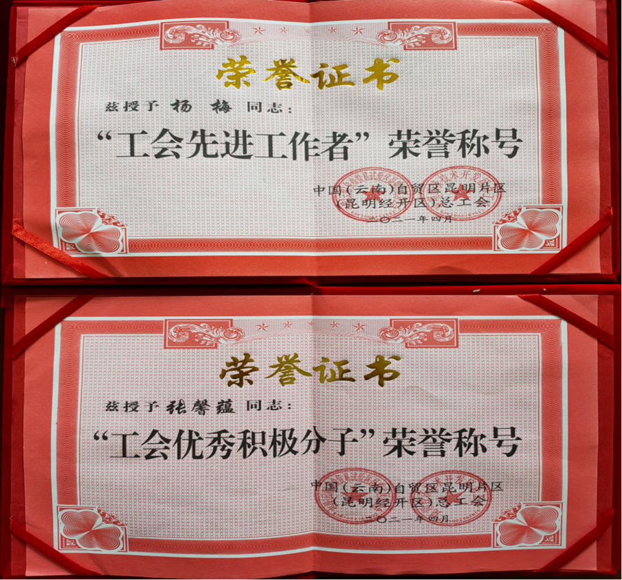 4月15日上午,中國(guó)(云南)自由貿(mào)易試驗(yàn)區(qū)昆明片區(qū)(昆明經(jīng)開區(qū))總工會(huì)召開2021年工作會(huì)。通泰公司工會(huì)榮獲2020年經(jīng)開區(qū)總工會(huì)工作目標(biāo)完成“特優(yōu)單位”,楊梅榮獲先進(jìn)工作者稱號(hào),張馨蘊(yùn)榮獲先進(jìn)工會(huì)積極分子稱號(hào),安黔獲選昆明市總工會(huì)第十六次代表大會(huì)經(jīng)開區(qū)代表。