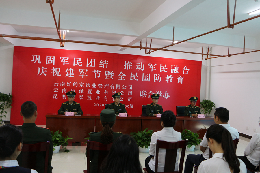 建軍節(jié)到來(lái)之際,康澤公司、通泰公司與云南好的家物業(yè)管理有限公司在春溪大廈開(kāi)展國(guó)防教育聯(lián)建活動(dòng)。